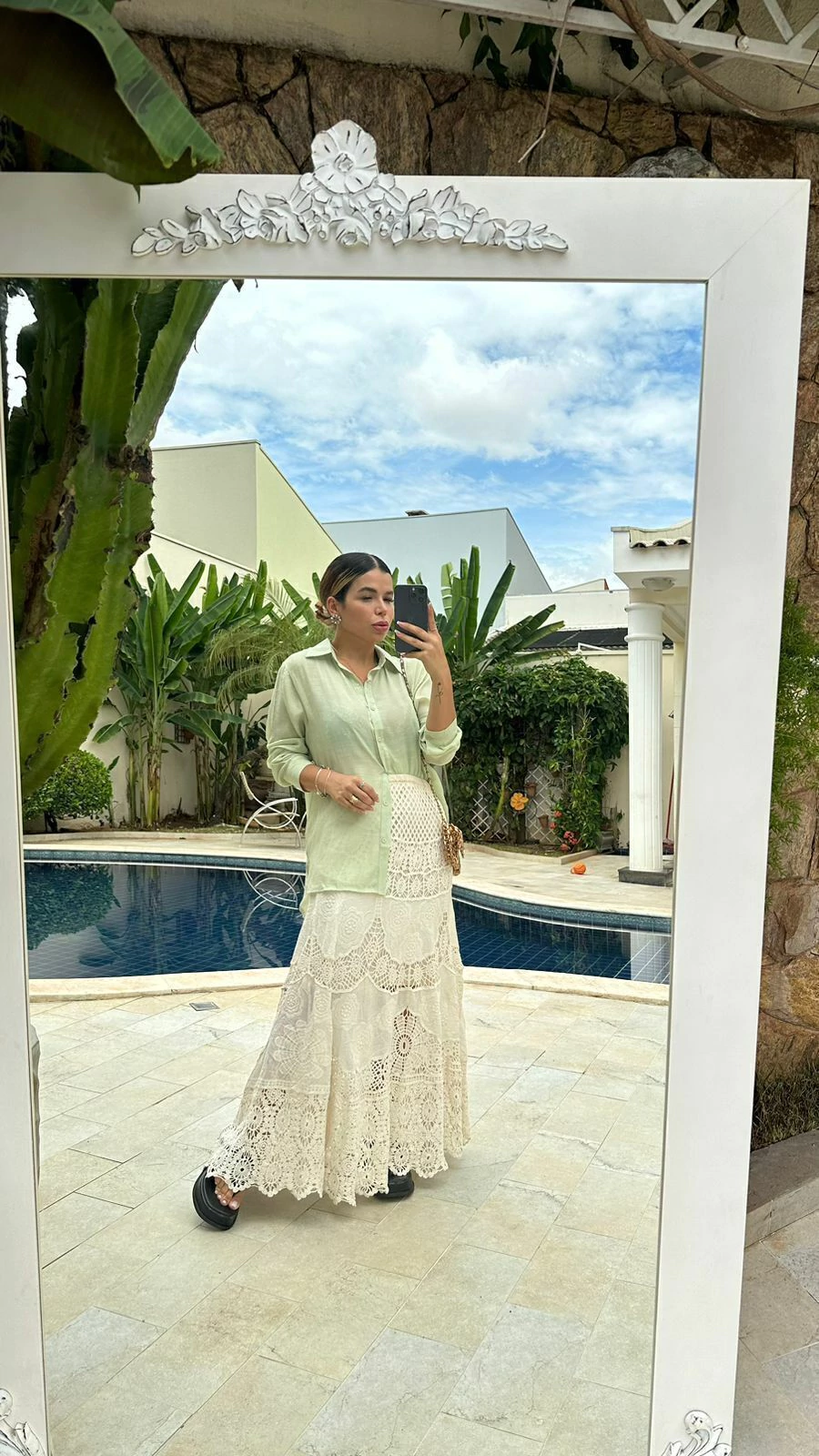 ✅ Tecido Crochê Premium: Confeccionada com um tecido de alta qualidade, a Saia Gucci oferece um toque macio e confortável, perfeito para o uso diário.
